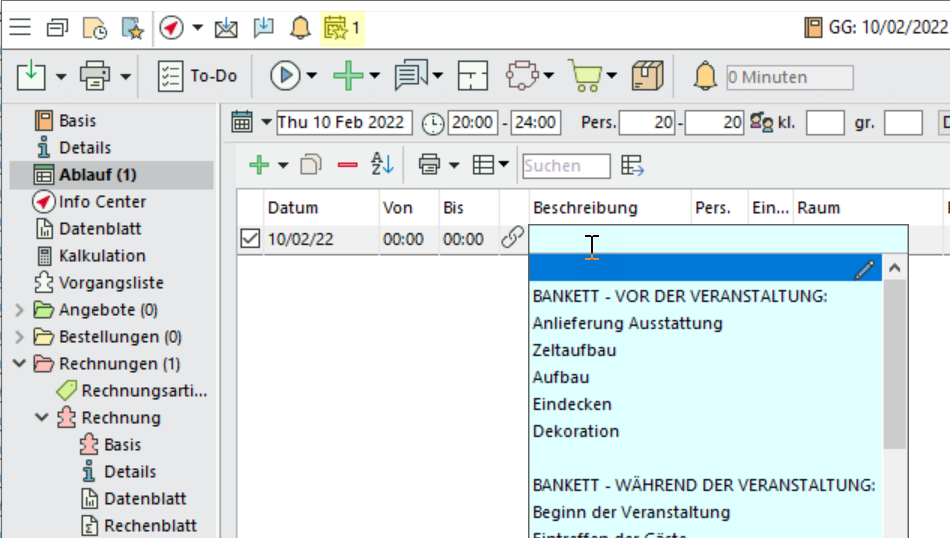 Auswahllisten in Oberflächen und Tabellen öffnen sich jetzt immer so breit, dass auch der längste Wert gut lesbar ist. Der Bereich der Oberfläche, der hierdurch überdeckt wird (nächste Spalte), wird sofort wieder sichtbar, wenn der Fokus nicht mehr in dem gewählten Feld ist.