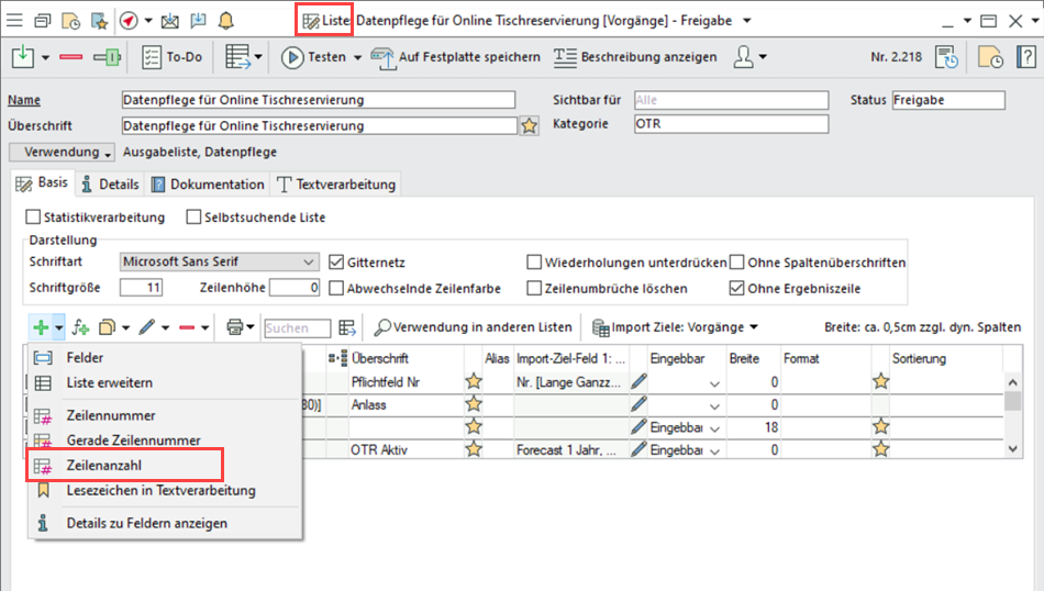 Analog zur "Zeilennummer" und "Gerade Zeilennummer" gibt es nun das Feld "Zeilenanzahl".