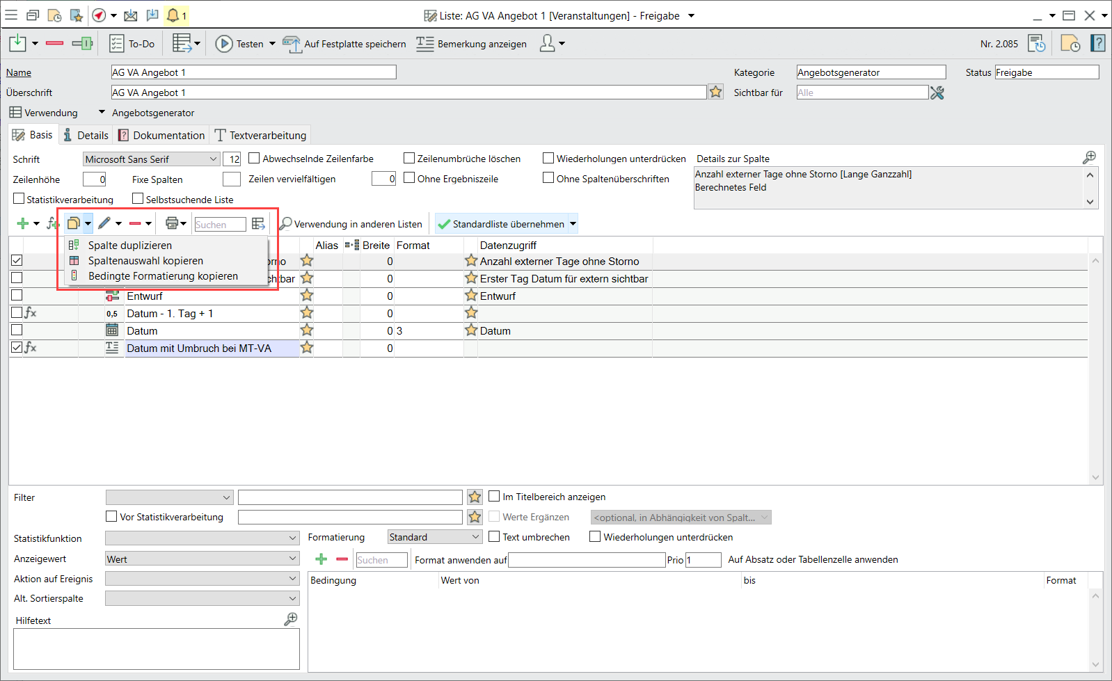 Im Listenwesen wurden die Basis- und Detailseiten überarbeitet, einige Optionen finden Sie nun an prominenterer Stelle.