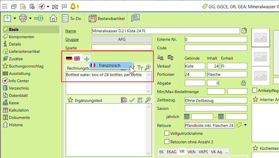 Weisen Sie mit dem Modul Mehrsprachigkeit in Artikeln, Briefen und Textvorlagen beliebig viele Übersetzungen zu. Für E-Mails können auch Anschreiben und Anhänge definiert werden.