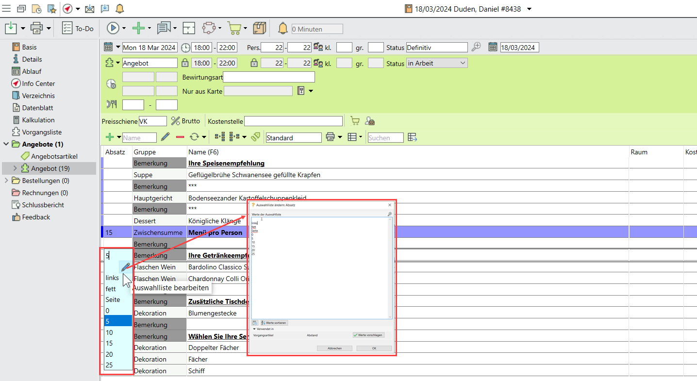 Werte der Spalte "Absatz" in Liste der Vorgangsartikel jetzt selber ändern