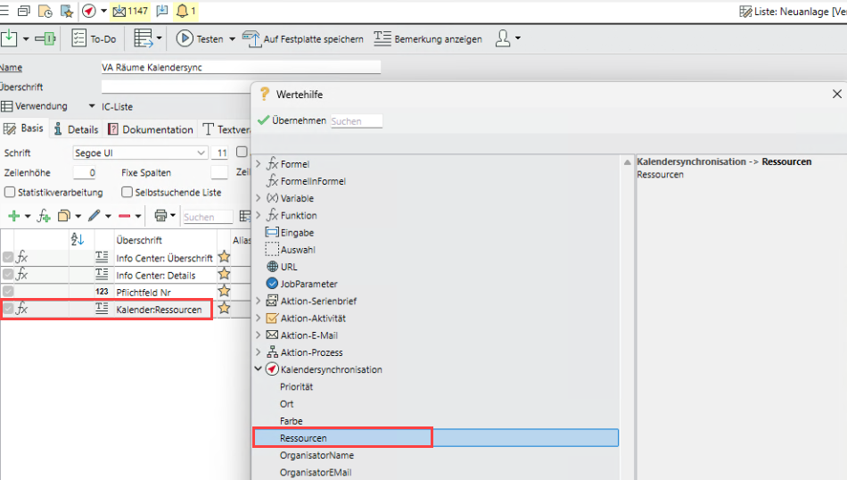 Über die Exportliste der Synchronisationstabelle (Wertehilfe > Kalendersynchronisation > Ressourcen) können diese Informationen direkt an ExchangeOnline übergeben werden.