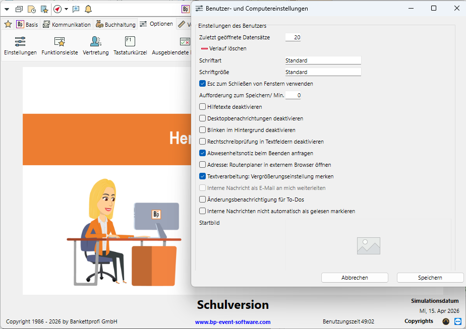 - Treffen Sie Ihre persönliche Auswahl zu Sicherheitsnachfragen, Anzeige von Hilfetexten oder Rechtschreibprüfung.