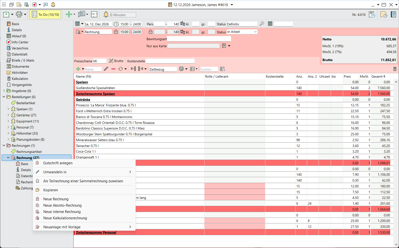 Neue Rechnung einen neuen Vorgang an. - Wählen Sie mit erneutem Rechtsklick auf die neue Rechnung den Rechnungstyp