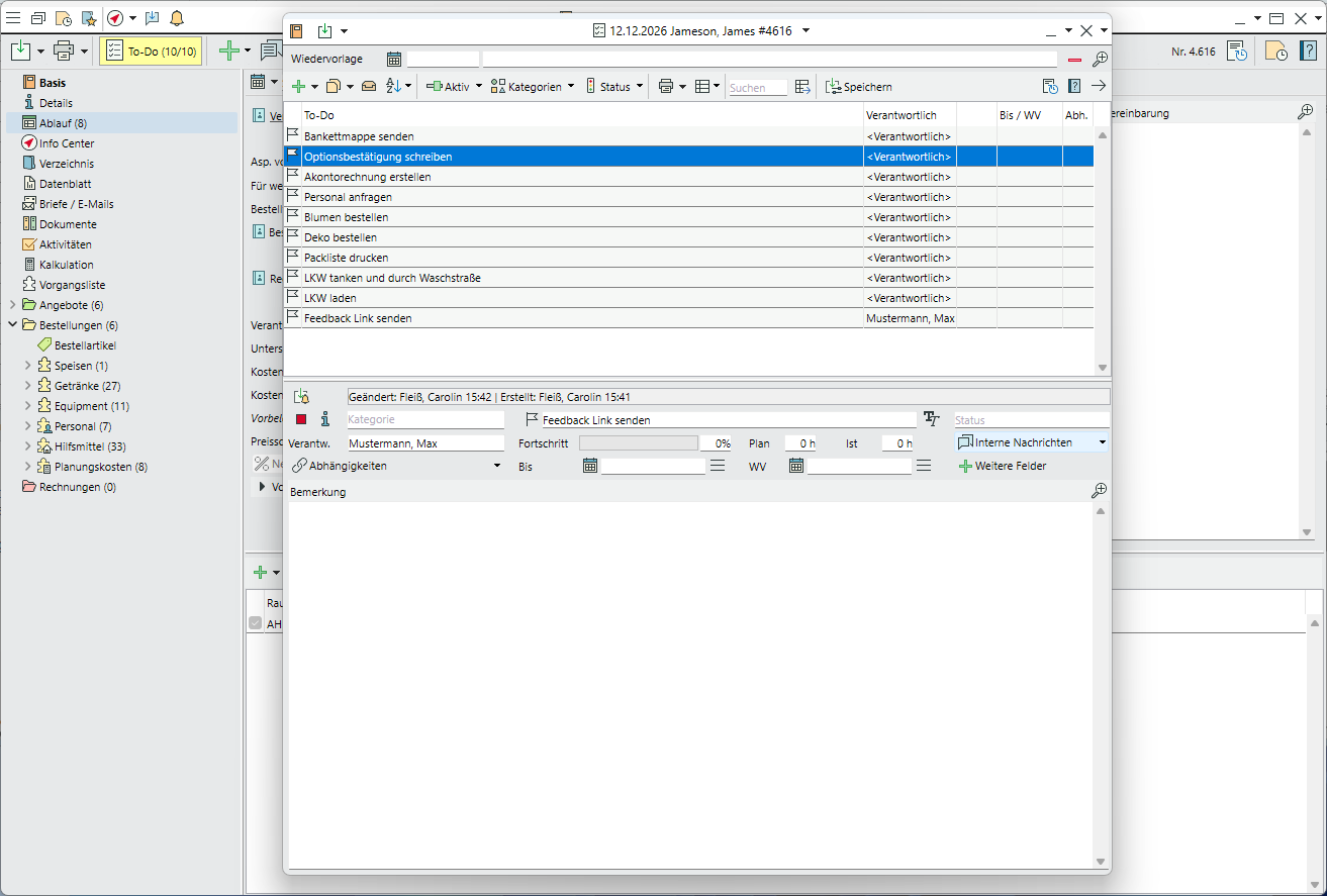 Beispiel: Der Kunde muss vom Veranstaltungsleiter am Donnerstag um 10 Uhr zurückgerufen werden.