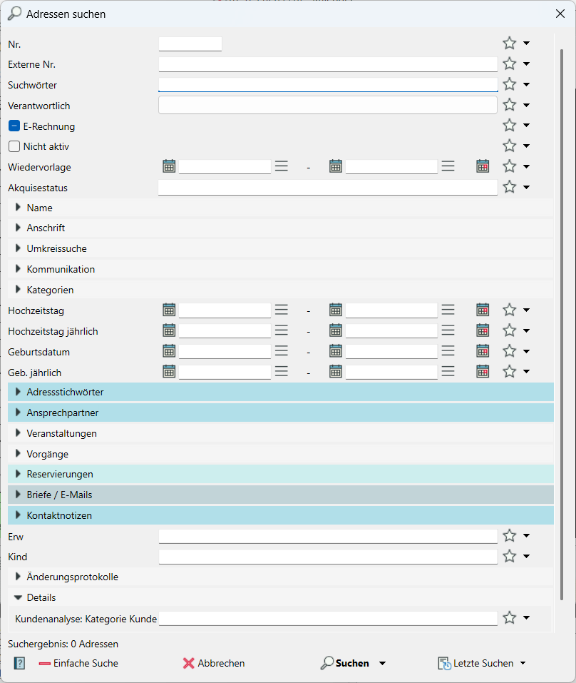 - Zusätzliche Suchfelder öffnen Sie über